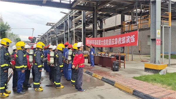 為了深入貫徹“安全第一、預(yù)防為主”的方針,提高生產(chǎn)系統(tǒng)突發(fā)事件應(yīng)急處置能力,9月20日,永祥多晶硅組織在803-7裝置內(nèi)開展應(yīng)急救援演練。公司總經(jīng)理劉逸楓、安全環(huán)保總監(jiān)牟俊豐、總經(jīng)理助理彭勇、副總工程師羅軒、總經(jīng)理助理兼生產(chǎn)部經(jīng)理王世棋及各部門負(fù)責(zé)人出席。
