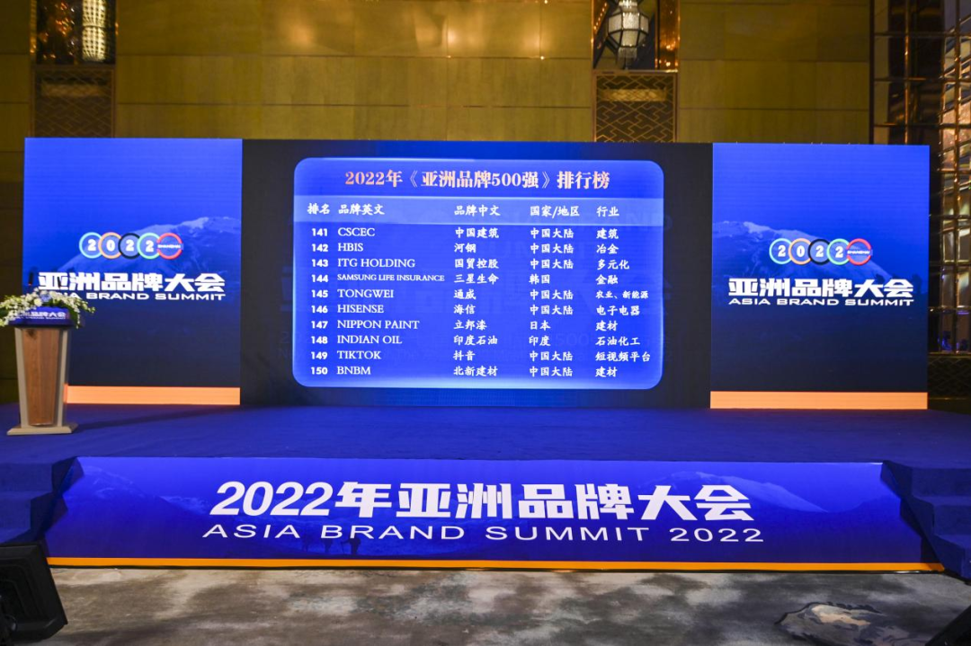 “亞洲品牌大會”發(fā)布2022《亞洲品牌500強》