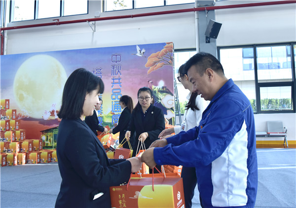 回顧三年來,公司在政府、集團、股份的關心支持下,杜總帶領全體干部員工勠力同心,共同走過了不平凡的歷程。在此佳節到來之際,杜總代表劉漢元主席、李斌副總裁為公司全體干部員工送上了祝福與精美的月餅禮盒。員工們接過的是禮盒,回饋的是笑臉與聲聲感謝!