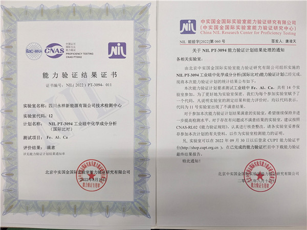永祥新能源榮獲工業(yè)硅粉能力驗(yàn)證證書