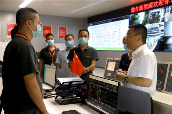 周華總經理在通合項目廠務中控室查看實時運行情況