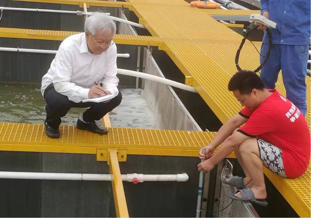 ▲通威首席水產技術專家吳宗文在“漁光一體”基地做試驗