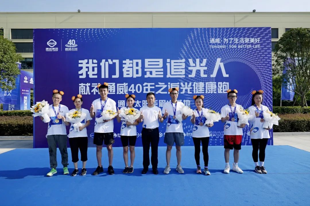 健康跑活動首站通威太陽能眉山基地獲獎選手合影留念