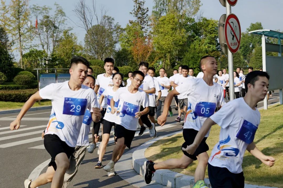 跑前的熱身運動點燃了選手們的奔跑激情。隨后,大家齊聚賽程起點,蓄勢待發,等待發令開跑?!案骶透魑唬A備,開始!”在激昂的音樂聲中,吳廠鳴笛發令。全體選手瞬間沖出起跑線,步履堅實,意氣風發向前奔跑。