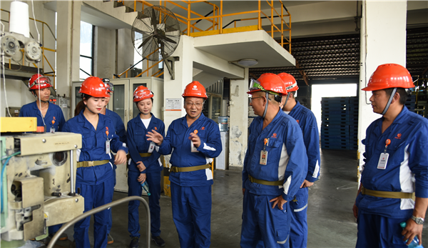 811日,通威股份副總裁李斌蒞臨永祥樹脂現場檢查指導工作。公司執行總經理杜亦軍、總經理助理柳志勇、人事行政部經理周萬江等相關負責人陪同。