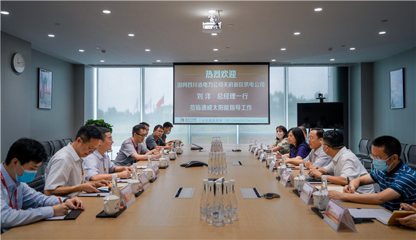 國網天府新區(qū)供電公司總經理劉洋一行蒞臨通威太陽能雙流基地交流座談