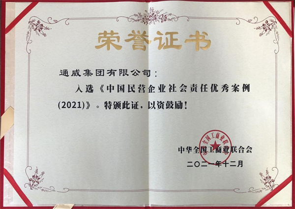 ▲通威入選《中國(guó)民營(yíng)企業(yè)社會(huì)責(zé)任優(yōu)秀案例(2021)》榮譽(yù)證書