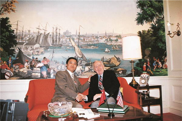 ▲劉漢元主席與摩托羅拉公司董事會主席羅伯特·高爾文先生親切會晤