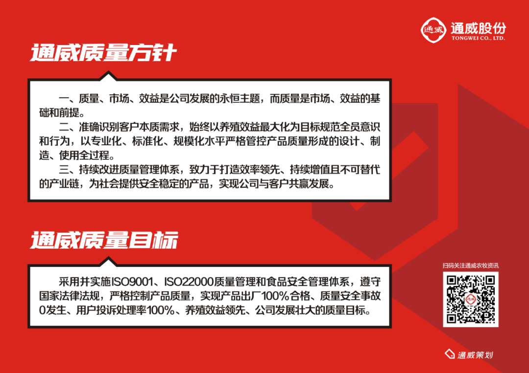 在眉山縣漁用配合飼料廠時(shí)期,因購進(jìn)的玉米含水率超標(biāo),質(zhì)檢部門把關(guān)不嚴(yán),造成當(dāng)月部分產(chǎn)品質(zhì)量下降。劉漢元主席當(dāng)即決定,銷毀沒賣出的飼料,嚴(yán)厲處罰當(dāng)事人和領(lǐng)導(dǎo),并主動(dòng)向使用了這批飼料的用戶作了相應(yīng)的賠償。1992年通威在《四川日?qǐng)?bào)》上投放整版廣告宣布,“有誰因?yàn)橘|(zhì)量問題而放棄使用通威飼料的,獎(jiǎng)勵(lì)1萬元”。且不論“徙木立信”“一字千金”的營銷策略,廣告背后展現(xiàn)的是劉漢元主席對(duì)產(chǎn)品質(zhì)量的自信與堅(jiān)持。