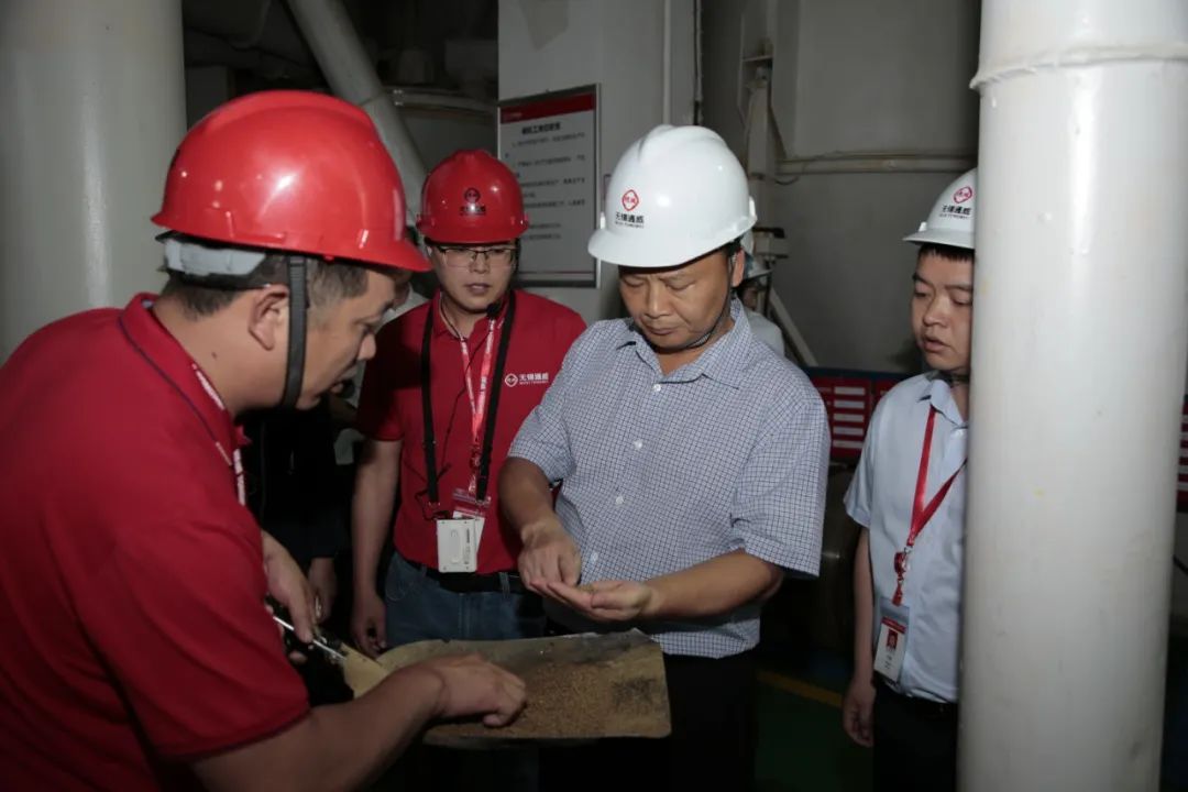 ▲劉漢元主席視察無錫通威時(shí)查看產(chǎn)品質(zhì)量