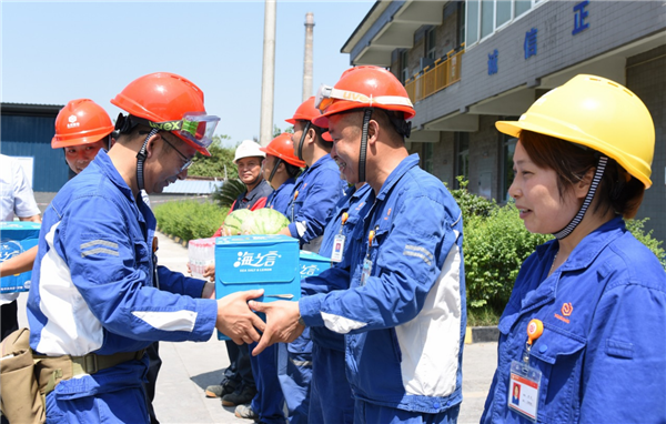 7月6日,五通橋地區的高溫橙色預警信號變更為高溫紅色預警。永祥股份及旗下所有公司黨、政、工配合,有條不紊地開展“夏日送清涼”高溫慰問活動,各公司產線安全穩定運行。