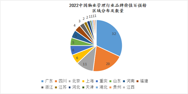 “2022中國物業管理行業品牌價值百強榜”區域分布及數量