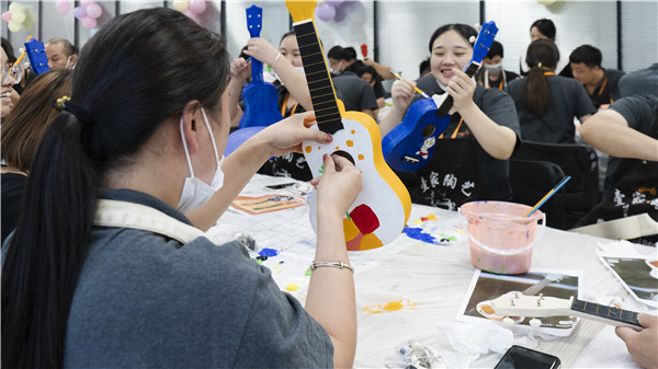 本季度生日會以DIY為主要形式,各基地開展尤克里里DIY、團扇DIY、永生花紗繃DIY等主題活動?;顒蝇F場,壽星們穿戴好圍裙,通過對色彩和圖案的自由調配,制作出獨一無二的手工作品,或呆萌可愛,或個性十足,深得壽星們喜愛,整個過程治愈解壓。