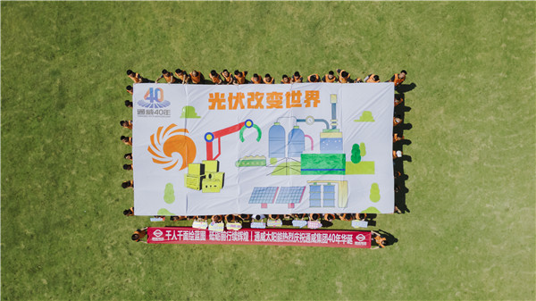 本次活動,通威太陽能組織各基地生產、職能體系,組成千人團,以獻禮集團 40 年為主基調,特別策劃設計“通威,為了生活更美好”“光伏改變世界”“通威,生日快樂”“千人千面·共繪藍圖”“揚帆起航 再續華章”五大主題巨幅畫卷,由各基地各部門千名員工進行繪畫創作,齊看通威今朝融合發展之精彩,共展通威未來發展之宏圖。