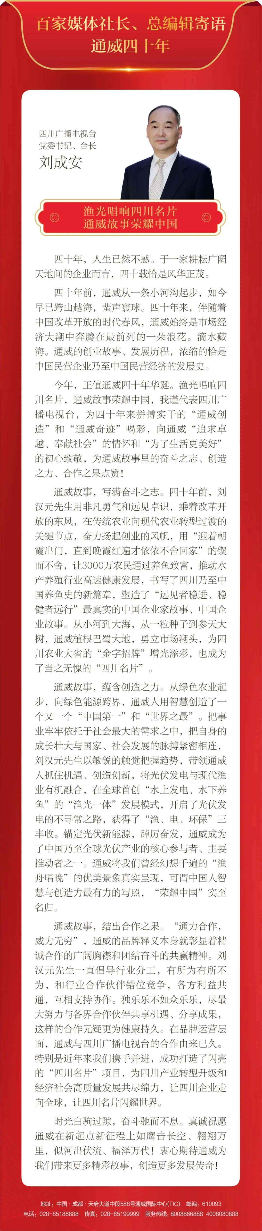 百家媒體社長、總編輯寄語通威四十年丨漁光唱響四川名片 通威故事榮耀中國