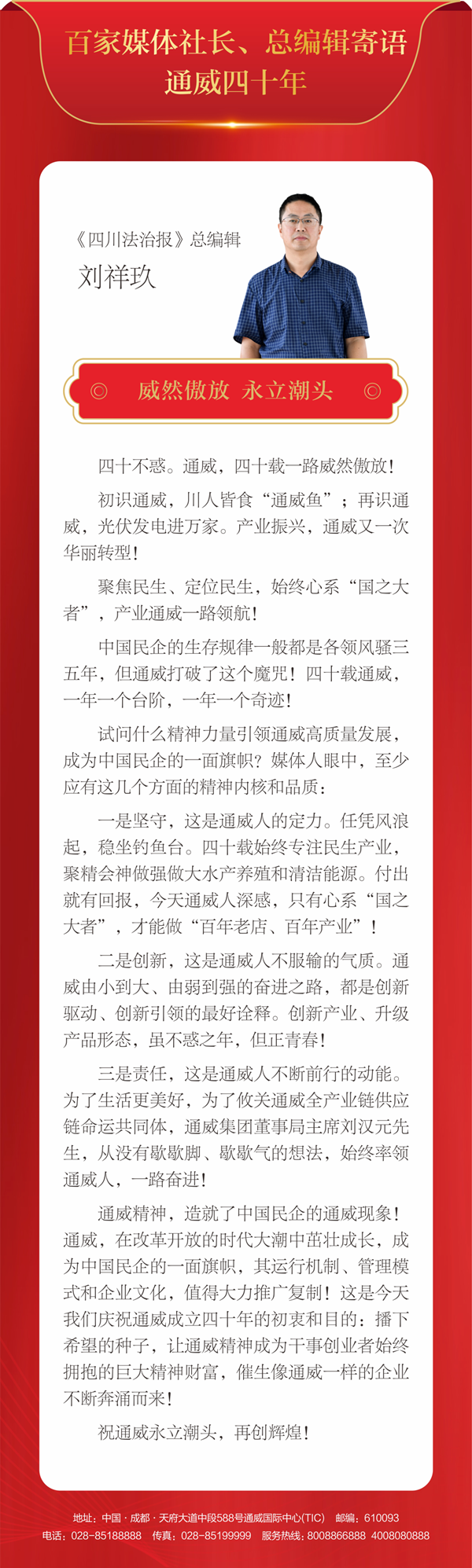 百家媒體社長、總編輯寄語通威四十年丨威然傲放,永立潮頭