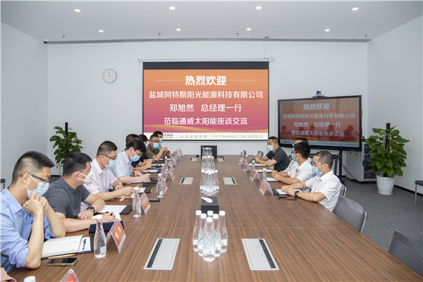 鹽城阿特斯陽光能源科技有限公司總經(jīng)理鄭旭然一行蒞臨通威太陽能眉山基地參觀交流