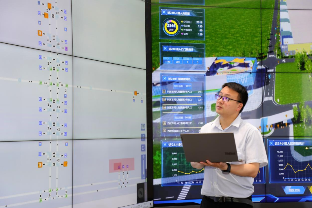 周猷在信息技術(shù)控制中心觀察車間運(yùn)行情況