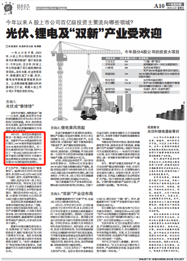 《信息時報》聚焦通威太陽能新建電池項目