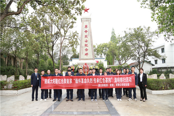 烈士業績照千秋,星星火炬代代傳。此次祭掃烈士陵園活動,是一次深刻的愛國主義教育及革命傳統教育,激發了公司黨員對黨和革命先烈的崇敬之情和對祖國的熱愛之情,黨員們表示要以革命先烈為榜樣,學習他們不畏艱難、勇于獻身的革命精神,為書寫通威太陽能新征程上的輝煌篇章不懈努力!