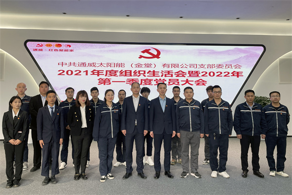 為深入學(xué)習(xí)貫徹習(xí)近平新時(shí)代中國(guó)特色社會(huì)主義思想,學(xué)習(xí)貫徹黨的十九屆六中全會(huì)精神,3月22日,中共通威太陽(yáng)能(金堂)有限公司支部委員會(huì)組織召開(kāi)2021年度組織生活會(huì)暨2022年第一季度黨員大會(huì),金堂基地副總經(jīng)理翟緒錦、黨支部書記王沙以及基地各部門20余名黨員參加本次會(huì)議。