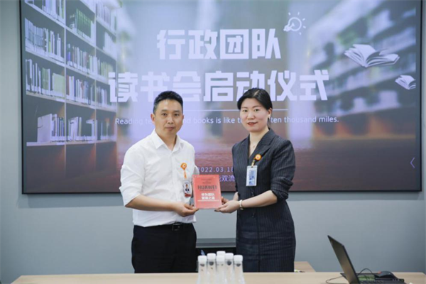 啟動會上,人事行政部相關(guān)負責人首先就活動背景、開展方式及年度計劃三個方面對共讀提升計劃進行詳細介紹,表示此次提升計劃結(jié)合各崗位工作特點及性格特點,為團隊成員分別準備了《華為團隊管理之道》《共情管理》《共情溝通》《掌控談話》《閉環(huán)思維》五本書籍,希望各成員通過閱讀提升共情管理能力、與人溝通的能力,提高溝通效率,提高工作效力,不斷行政保障能力。活動現(xiàn)場,陳總鼓勵大家在各崗位開展工作的同時,多閱讀、多學習、多提升,高效解決工作過程遇到的問題。
