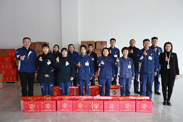 袁總首先來到食堂,向食堂員工及保潔員們致以誠摯的問候和新春的祝福,并為大家發放了慰問品。隨后,袁總一行前往生產現場,向堅守生產一線的員工們的辛勤工作表示感謝,并囑托他們做好安全生產工作。