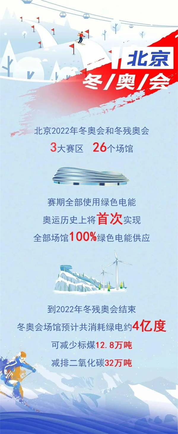 2022年2月4日,北京冬奧運動會正式開幕,根據外交部發言人趙立堅表示,北京冬奧會三大賽區26個場館將歷史性的首次實現100%綠色電能供應,其綠電主要來自河北張北地區。