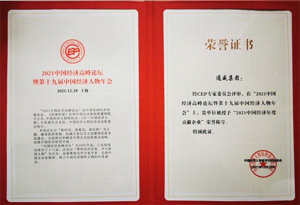 通威榮獲“2021中國經濟年度貢獻企業”榮譽