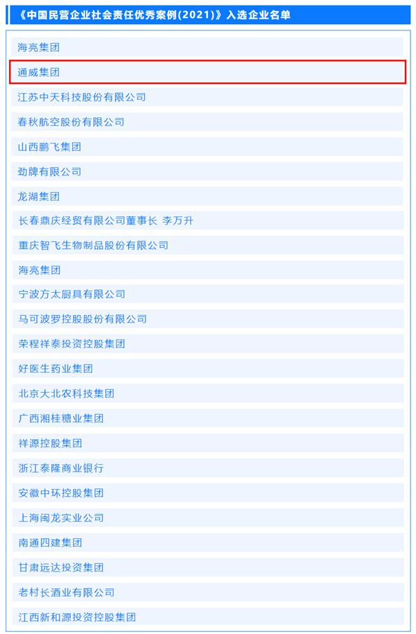 通威入選《中國民營企業(yè)社會(huì)責(zé)任優(yōu)秀案例(2021)》