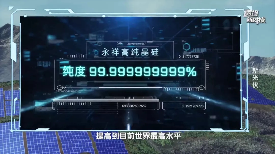 央視指出,永祥股份高純晶硅產(chǎn)品純度已達到目前世界最高水平