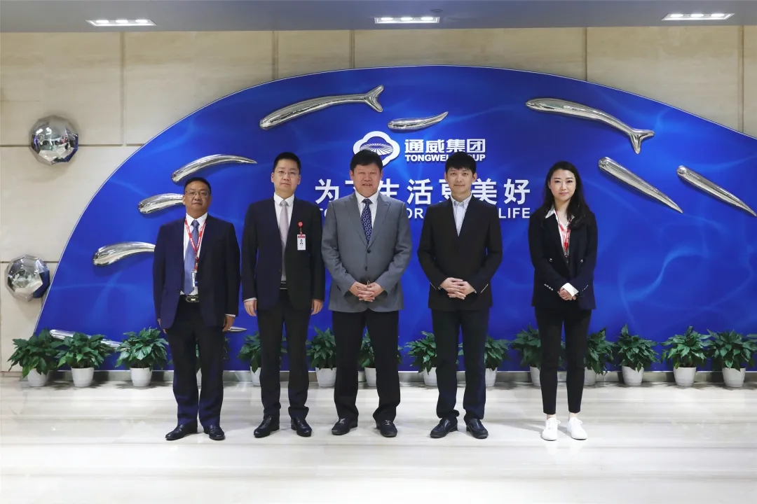馮董事長一行先后參觀了通威太陽能A1展廳、智能制造生產車間和集團體驗中心,詳細了解了通威39年來“發端于水產,成長于農牧,跨越于新能源”的創業歷程,對通威綠色生態發展理念、綠色農業與綠色能源高效協同發展、智能化生產水平,以及多年來穩健發展取得的成績給予高度評價。