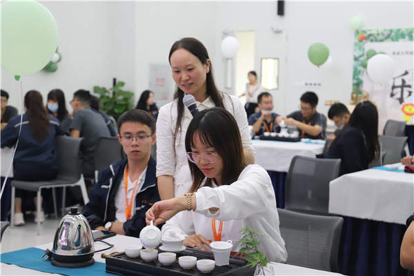 在開(kāi)場(chǎng)小游戲之后,茶藝?yán)蠋煄?lái)了一段精彩的茶藝表演,用淺顯易懂、風(fēng)趣幽默的語(yǔ)言為大家生動(dòng)地普及了茶的起源發(fā)展、茶具的分類(lèi)和作用等茶藝知識(shí)。