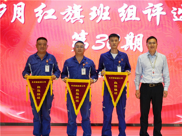 羅周總為紅旗班組頒授紅旗并表示祝賀。羅總指出,眾多優秀的基層管理干部不斷成長,再次充分證明了堅持班組建設的正確性和前瞻性,這是永祥能持續壯大的基礎,希望這塊基石在各方努力下,更加夯實和牢靠。李董說過,唯有安全也只有安全才能阻擋永祥新能源的發展,要進一步強化安全管理工作,緊繃安全這根弦不松懈。班組建設肩負了傳承的重要作用,無論是管理理念還是技能水平,都融入到了班組建設當中,要持續完善師帶徒機制,促進安全標準、企業文化的薪火相傳,推動公司長久穩定高質量發展。