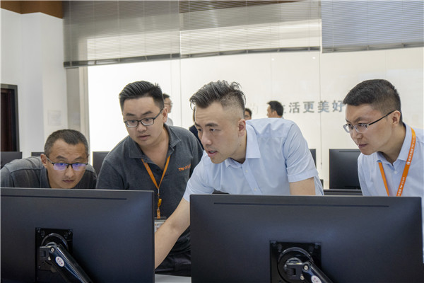 高管團隊在眉山基地中控室了解廠務系統運行情況