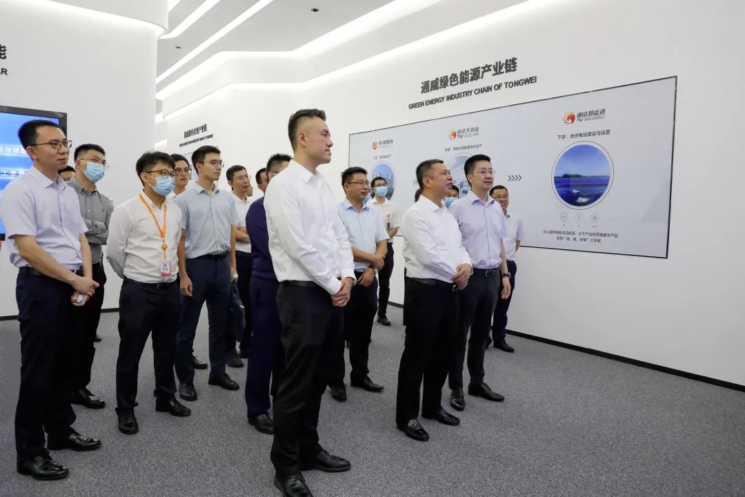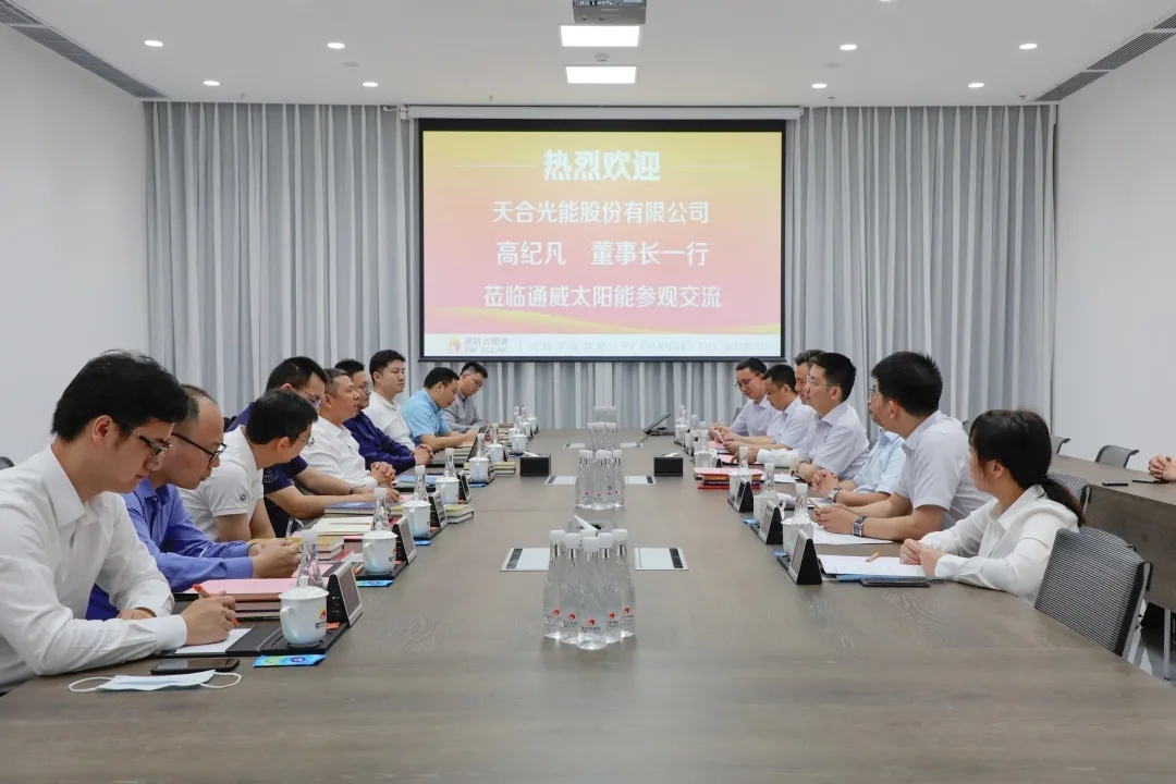高紀(jì)凡董事長、謝毅董事長聽取通合新能源項(xiàng)目建設(shè)情況介紹 在通合新能源項(xiàng)目建設(shè)現(xiàn)場,高紀(jì)凡董事長詳細(xì)聽取了項(xiàng)目建設(shè)進(jìn)度、技術(shù)水平、配套設(shè)施等情況的介紹,并走進(jìn)通威太陽能金堂基地A1展廳、智能制造電池生產(chǎn)車間,實(shí)地查看生產(chǎn)線運(yùn)行、產(chǎn)品產(chǎn)出、5G工業(yè)化運(yùn)用、智能制造等情況。座談會(huì)上,雙方回顧了過往的合作情況,就生產(chǎn)內(nèi)容、光伏產(chǎn)業(yè)技術(shù)路線、合資項(xiàng)目建設(shè)進(jìn)度、行業(yè)市場動(dòng)態(tài)等內(nèi)容進(jìn)行了深度探討。 參觀通威太陽能金堂基地A1展廳 高紀(jì)凡董事長對通合新能源項(xiàng)目建設(shè)情況給予充分肯定,對合作前景充滿信心,并表示,希望未來雙方繼續(xù)保持溝通交流,進(jìn)一步深化優(yōu)勢互補(bǔ)和產(chǎn)業(yè)聯(lián)合的合作關(guān)系,攜手做大做強(qiáng),共同構(gòu)建互利共享、協(xié)同發(fā)展的產(chǎn)業(yè)生態(tài)典范,為社會(huì)創(chuàng)造更大效益。 座談交流現(xiàn)場 謝毅董事長表示,下一步將穩(wěn)步推進(jìn)通合新能源項(xiàng)目建設(shè)工作,希望雙方繼續(xù)秉承緊密協(xié)同的合作精神,利用各自優(yōu)勢,攜手攻克建設(shè)難關(guān),共促新項(xiàng)目早日達(dá)成,共創(chuàng)雙贏發(fā)展局面,為行業(yè)提供優(yōu)質(zhì)高性價(jià)比產(chǎn)品,攜手推動(dòng)光伏行業(yè)健康穩(wěn)定發(fā)展。 合影留念