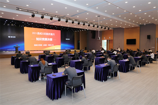 為進一步提高全員質量意識,使質量知識深入滲透進每位員工心中,表現在行動中,9月6日,通威太陽能“管理風險出效益,持續改進贏市場”主題質量知識競賽圓滿結束,合肥、雙流、眉山三地共計14560余人次參與,較去年提升95%。