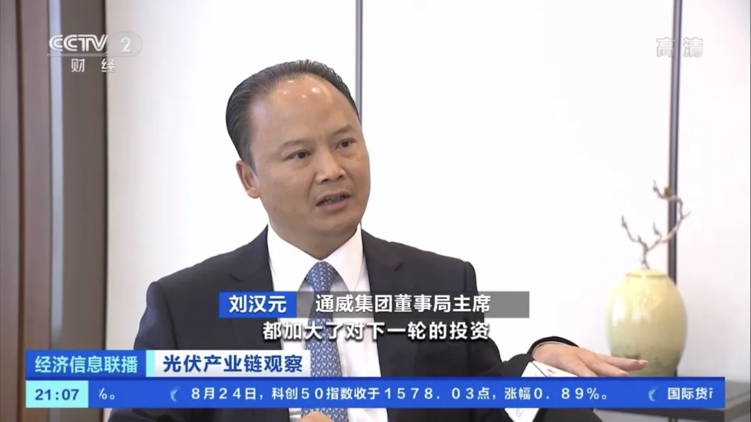 8月24-25日,央視財經頻道《經濟信息聯播》播出《光伏產業鏈觀察》專題報道,連續兩天聚焦通威新能源產業的發展成果,探討光伏產業發展新趨勢。