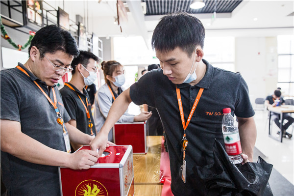 活動采取抽盲盒形式開展,員工通過盲盒方式隨意抽取“安全環(huán)保十大禁令”第幾條,回答正確即可再用盲盒方式抽取精美禮品。活動現(xiàn)場氣氛活躍,各部門員工紛紛積極參與,體現(xiàn)出公司濃厚的安全文化氛圍,也從側面反映出員工們對“安全環(huán)保十大禁令”早已根植于心。