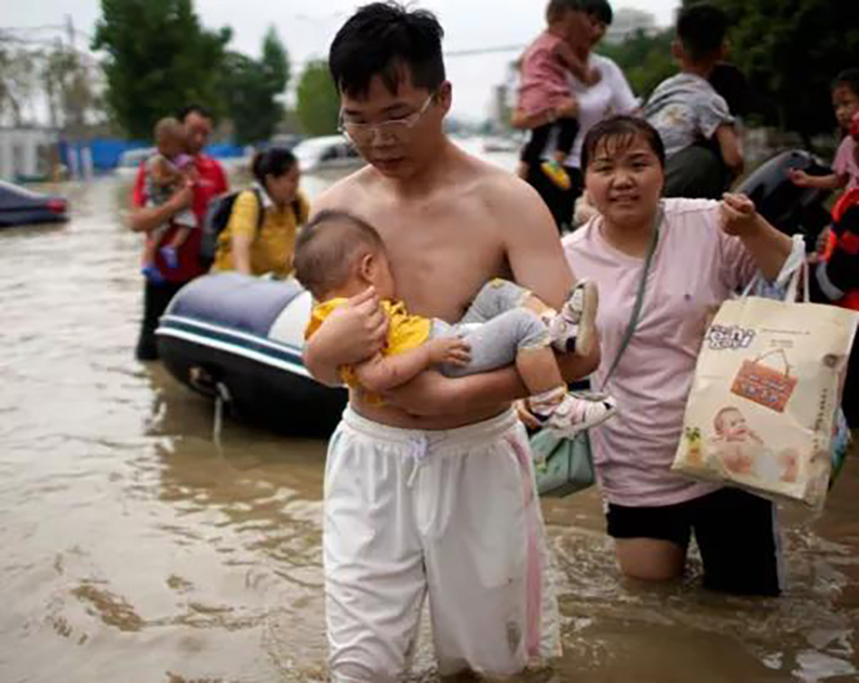 中國河南洪水中受災的人們