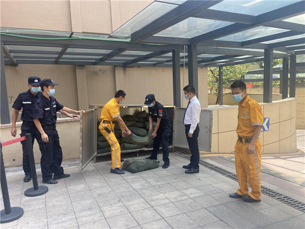 為積極應對汛期,做好防汛工作,通宇物業各項目提前針對防汛工作要點及職責分工進行梳理,制定了完善的防汛應急預案并形成文件下發,落實到人。8月5日上午9點,通威國際中心項目率先開展了2021年防汛安全隱患排查工作,由公司總經辦團隊帶隊,逐一檢查擋水板、防汛沙袋、雨衣雨靴等防汛物資儲備情況,確保物資配備充分、規范存放,同時對地下室出入口、人防通道、地下車庫、非機動車庫、排污泵、下水道、屋頂天面地漏、廣場外圍排水道、樓宇外立面、外掛空調、戶外廣告等重點防汛區域進行仔細排查,找出各種潛在隱患并有效整改,杜絕安全事故發生。
