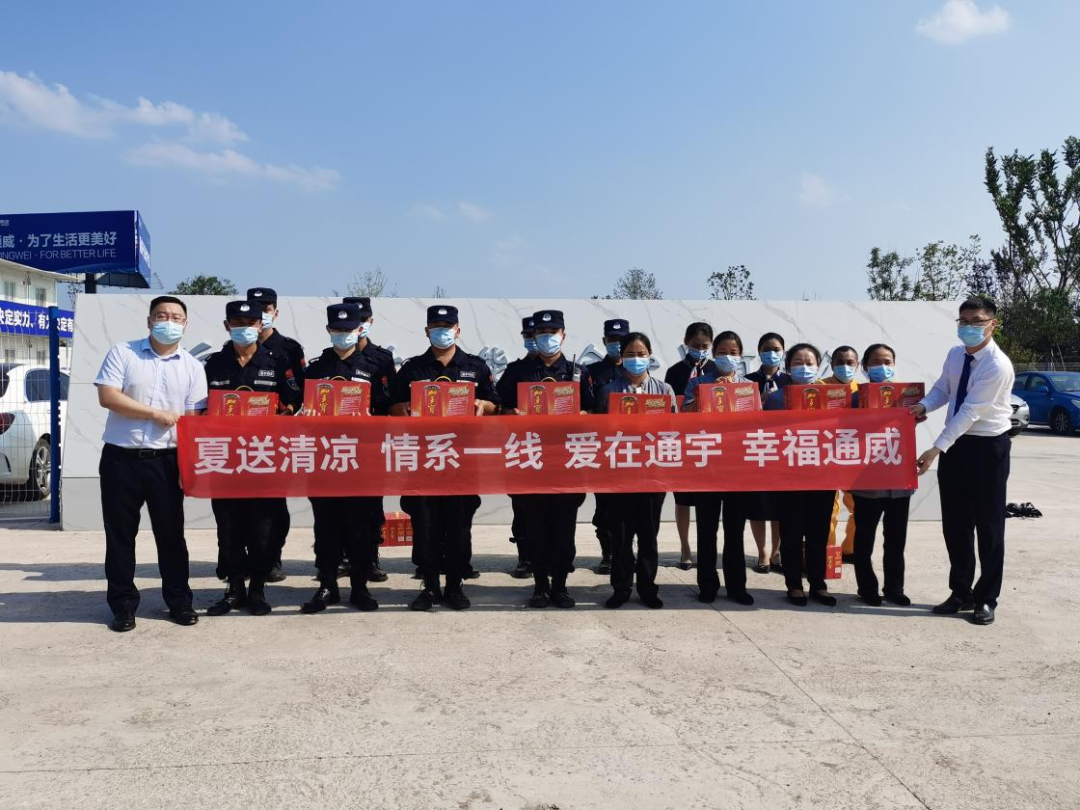 8月3日,在黃總的統一安排下,通宇物業總經辦成員分頭行動,各自帶隊深入各項目值班一線,先后前往仙湖公館、夢魔方廣場、世地長灣、雙流太陽能、金堂太陽能、樂山永祥等多個項目開展夏日“送清涼”活動,為公司一線員工送去關懷。