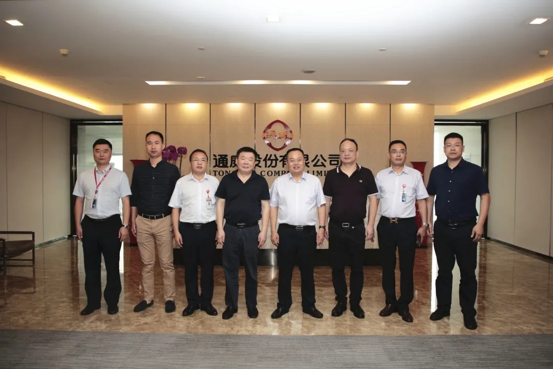 7月20日,武漢市臨空港經開區高新產業辦黨組書記、主任姜舟一行蒞臨通威參觀考察。通威股份總裁郭異忠及相關部門負責人等熱情接待并座談。