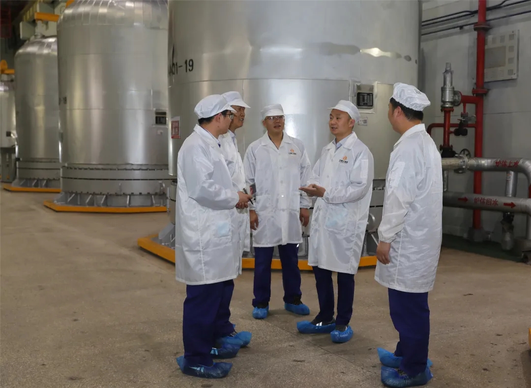 10點(diǎn)30分,督查組離開后,袁總率管理團(tuán)隊深入生產(chǎn)一線檢查安全生產(chǎn)工作。經(jīng)過套鞋套、換防塵服、過風(fēng)淋等一系列標(biāo)準(zhǔn)化程序,進(jìn)入還原大廳后,袁總走近還原爐查看生產(chǎn)情況,與還原工段負(fù)責(zé)人交流節(jié)能降耗的技術(shù)、工藝創(chuàng)新。從冷氫化裝置區(qū),到精餾塔、球罐區(qū)……每到一處,袁總詳細(xì)了解了安全巡檢情況,并要求相關(guān)負(fù)責(zé)人嚴(yán)格按照安全清單,落實(shí)責(zé)任,加強(qiáng)檢查,確保各生產(chǎn)區(qū)域生產(chǎn)安全、高效。