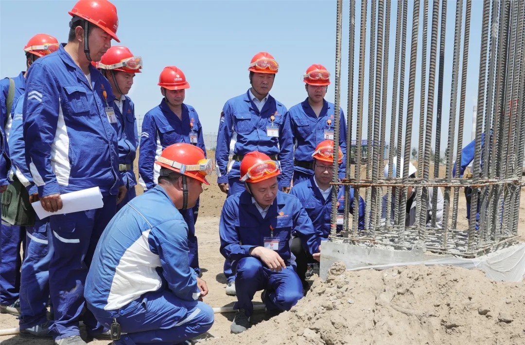 11點(diǎn)5分,陽光肆無忌憚地直射下來,高溫炙烤著大地,但阻擋不了內(nèi)蒙古通威高純晶硅二期項目建設(shè)的熱潮。運(yùn)輸車、灑水車輛來回穿梭,打樁機(jī)、挖掘機(jī)、吊裝機(jī)轟鳴,在高高低低的塔吊下,各裝置區(qū)建設(shè)初具雛形,員工精神飽滿,有序開展各項工作。袁總走進(jìn)施工現(xiàn)場,查看混凝土澆筑情況,與參建單位對照施工計劃表,了解施工痛點(diǎn)堵點(diǎn),提出糾偏措施,把項目建設(shè)協(xié)調(diào)會開到現(xiàn)場,確保項目建設(shè)有序高效推進(jìn)。