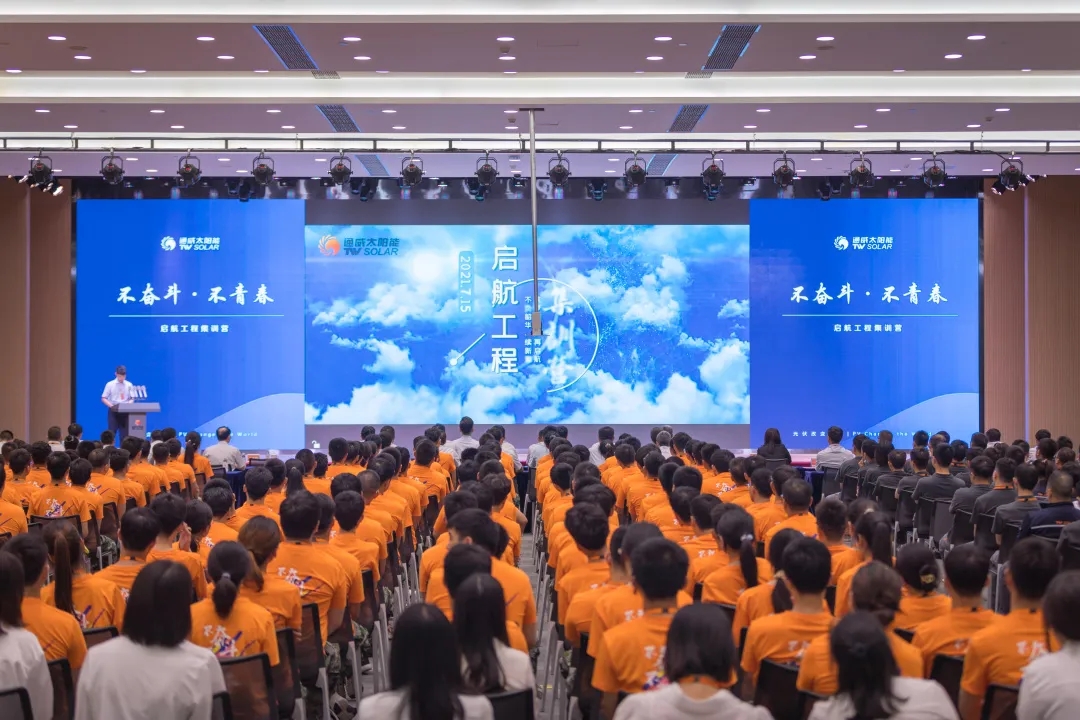 不奮斗,不青春!7月15日,通威光伏學(xué)習(xí)中心2021年“啟航工程”集訓(xùn)營正式啟幕,來自全國各大高校共計(jì)200余位應(yīng)屆畢業(yè)生參與本次開班儀式。通威太陽能董事長兼總經(jīng)理周丹攜各基地中高管團(tuán)隊(duì)出席開營儀式。