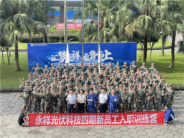 7月12日,永祥光伏科技第四期新員工入職培訓(xùn)如期舉行。永祥光伏科技副指揮長張軍,光伏科技指揮長助理徐根良、趙軍、馬自成及相關(guān)領(lǐng)導(dǎo)出席。130余名新員工身著軍訓(xùn)服,精神飽滿地參加了本次入職培訓(xùn)開學(xué)典禮儀式。