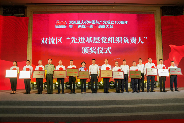 此次表彰大會上,區委書記鮮榮生為雙流獲得“光榮在黨50年”紀念章老黨員代表頒授紀念章。同時,大會隆重表彰了106名優秀共產黨員,50名優秀黨務工作者,50個先進基層黨組織。