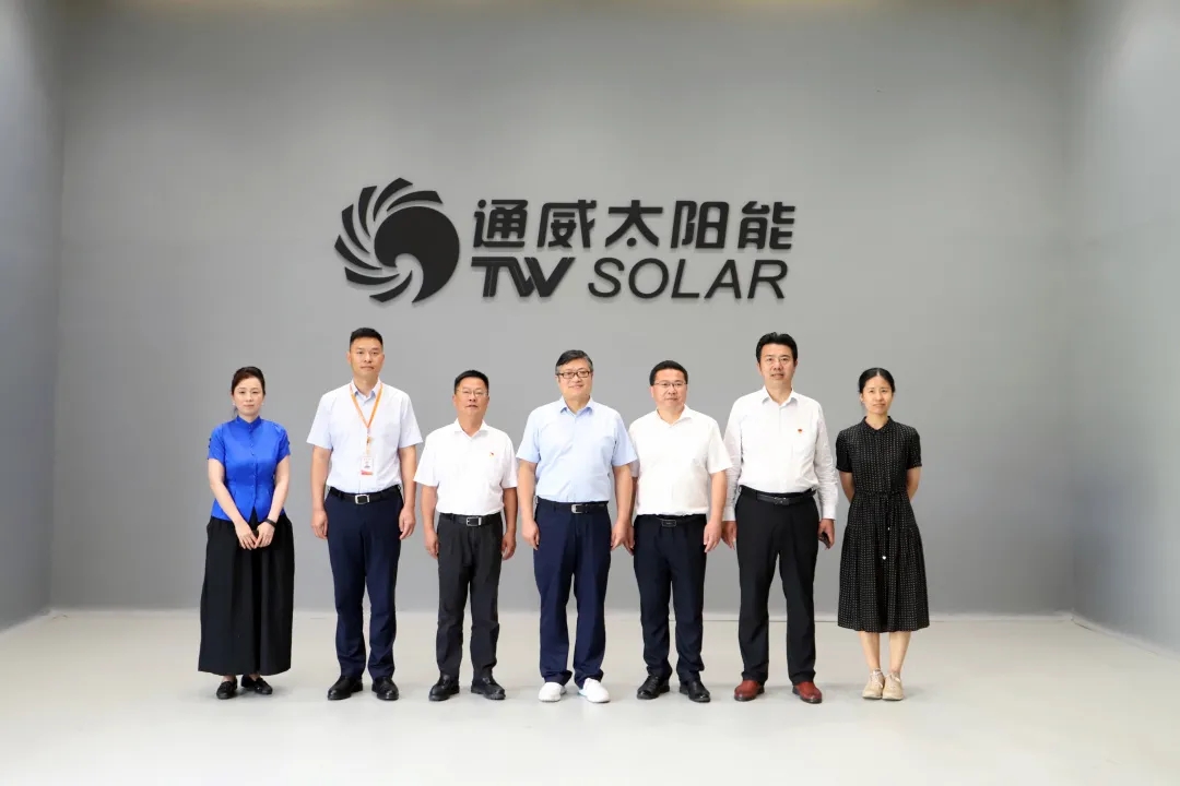 6月29日,四川省經信廳副廳長敬茂明一行蒞臨通威太陽能眉山基地調研,眉山市經信局局長彭盆、甘眉工業園區黨工委書記鄧強、甘眉工業園區管委會常務副主任更登澤郎陪同調研,通威太陽能眉山基地總經理助理蔣衛朋熱情接待。
