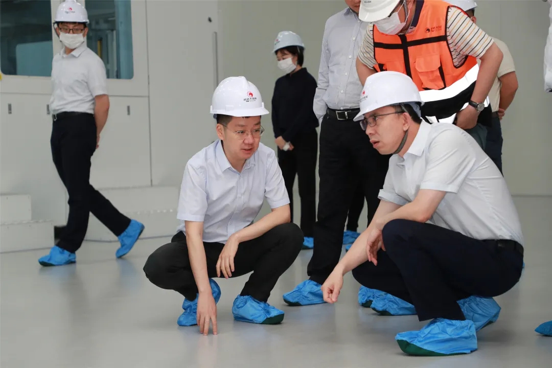 謝毅董事長還陪同朱和金副縣長視察基地,現場查看正在組裝調試中的異質結電池生產車間、石墨舟房等,深入查看生產線安裝調試、設備維護等情況,詳細詢問技術細節。謝毅董事長強調,要在保障安全的前提下,加快車間設備調試進度,提升車間設備、工藝穩定性,實現各項工作順利推進。